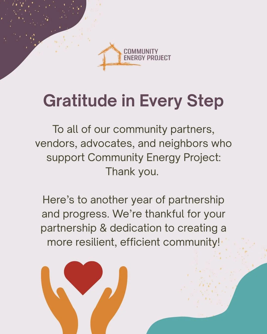 Thanks to the unwavering support of our local funding and community, our intent is for our programs and services to continue uninterrupted and our fight for energy justice remains our driving force. Together, we will ensure that the communities we care so deeply about receive the resources, education, home repairs, efficiency upgrades, and support they need to create resilient, efficient, and healthy homes.